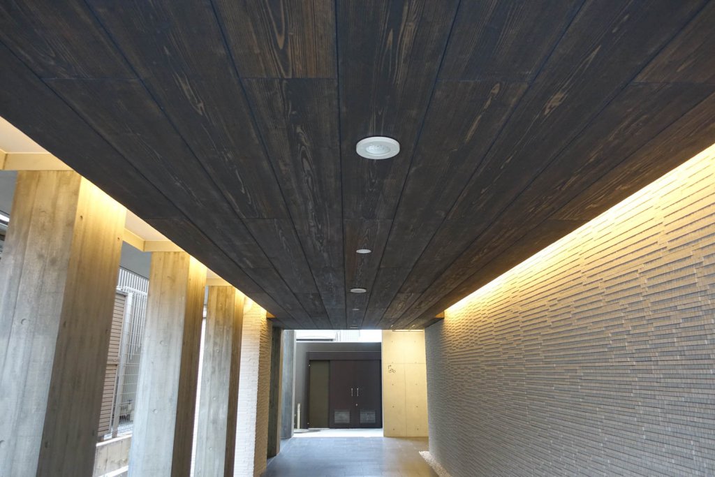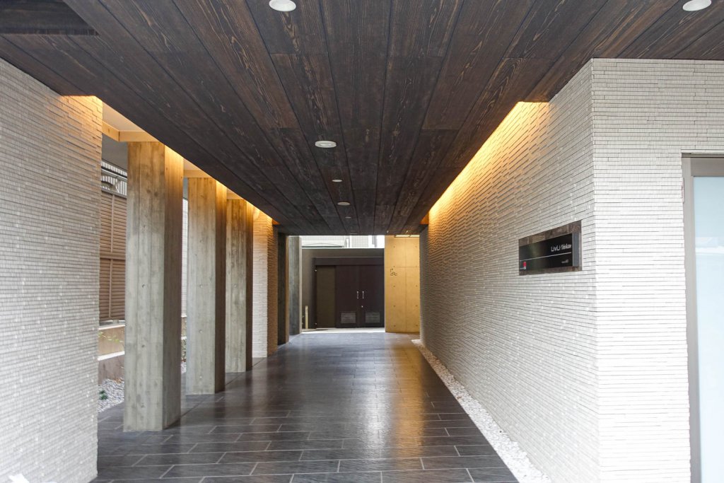 マンション全体の高級感とモダンさのデザインと木目調がコラボレーションすることで、訪れる人々に安心感を与えることができるようになりました。