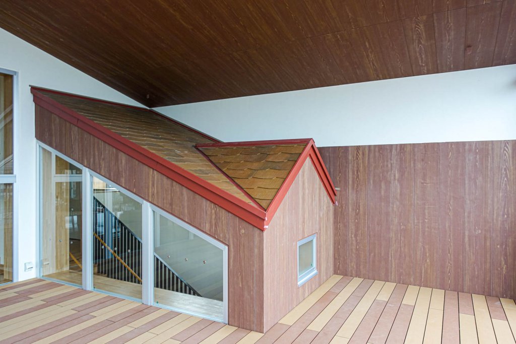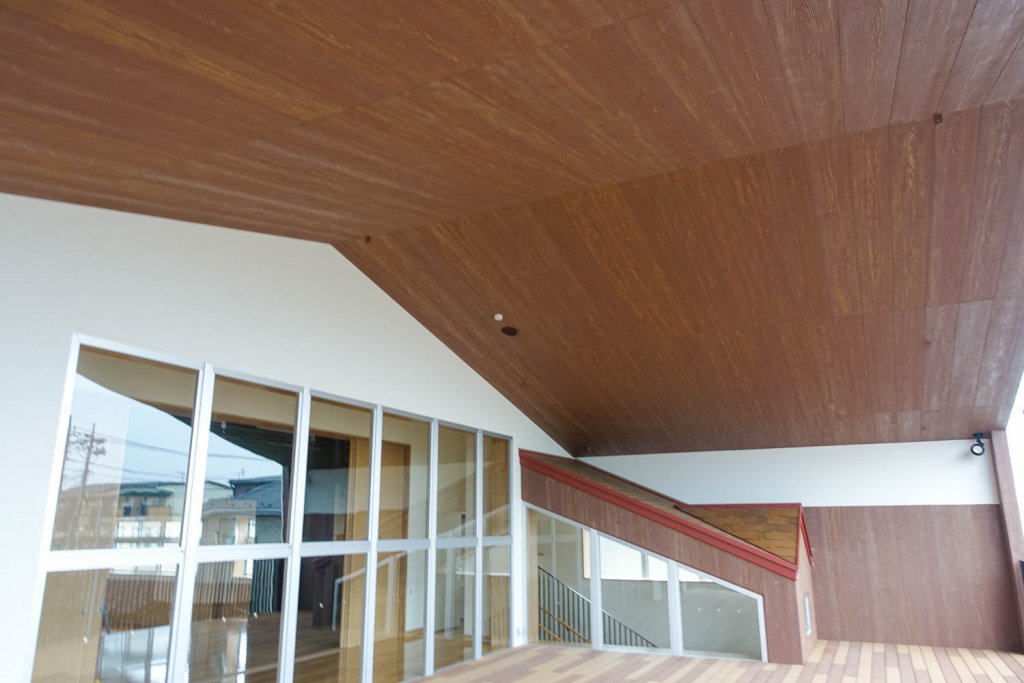 木目調マハールの天然木の風合いは、建物に温かみを持たせることが可能です。