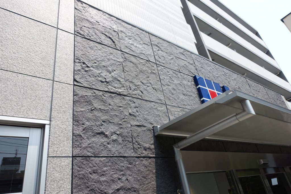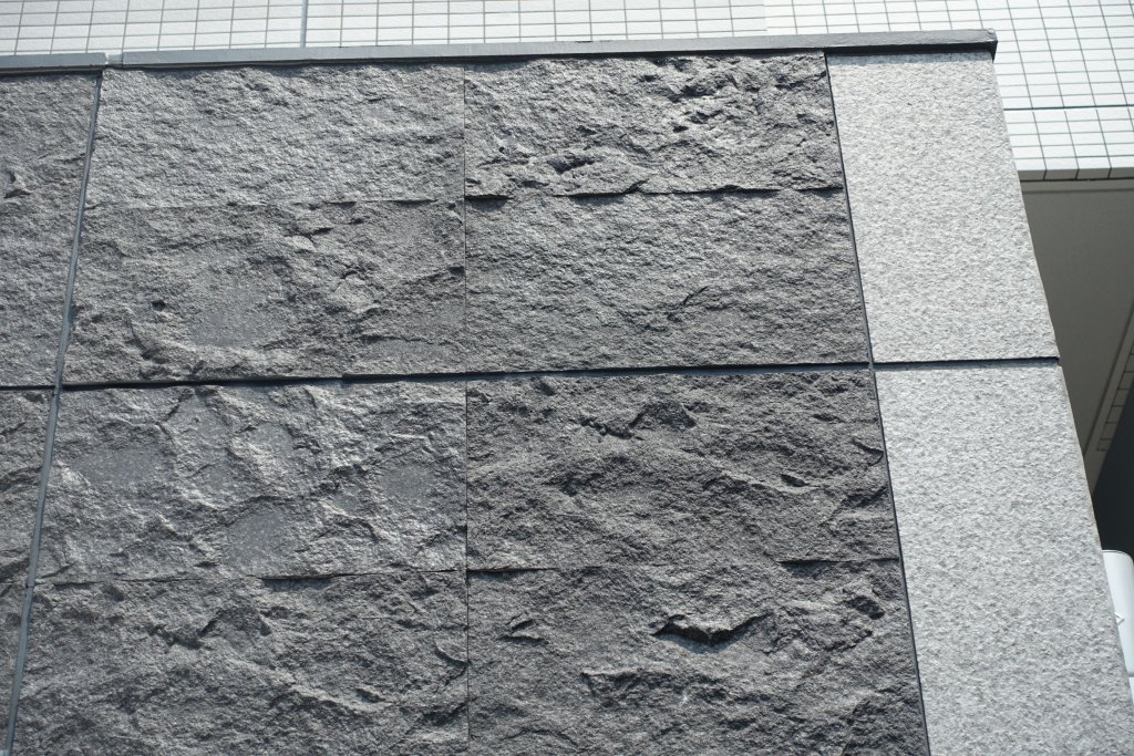 施工後の成果 ケンチ石調マハール特有の割肌のテクスチャーが、良い雰囲気を醸し出し、他の建物との差別化をすることができました。