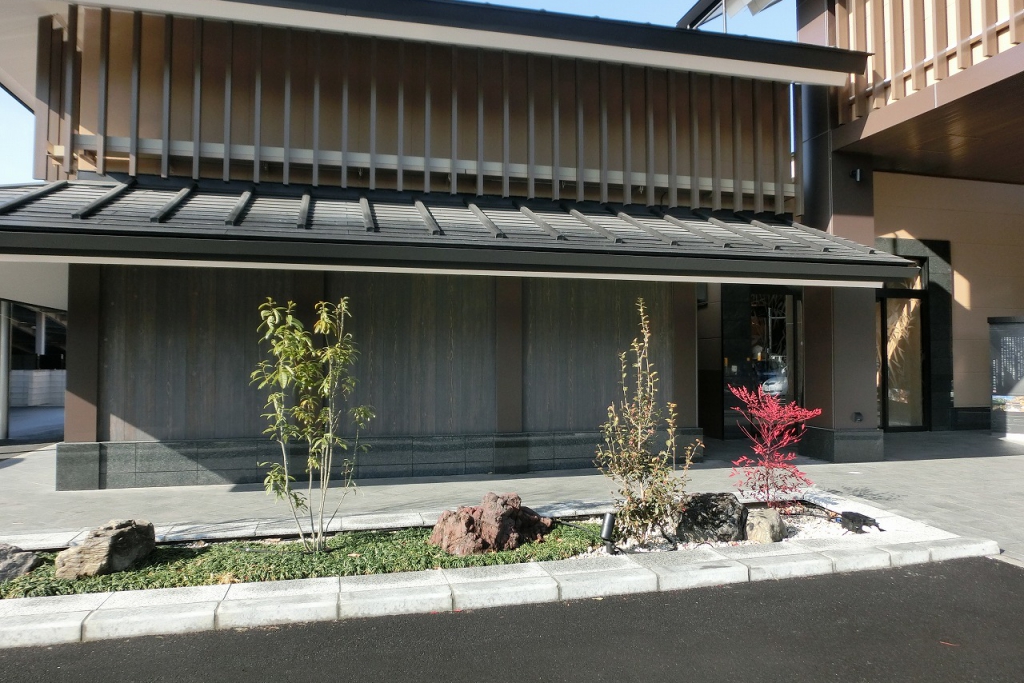 温浴施設の玄関になる部分に木目調を施工したことで、木目の温かい雰囲気が、お客様に安心感を与えることができました。
