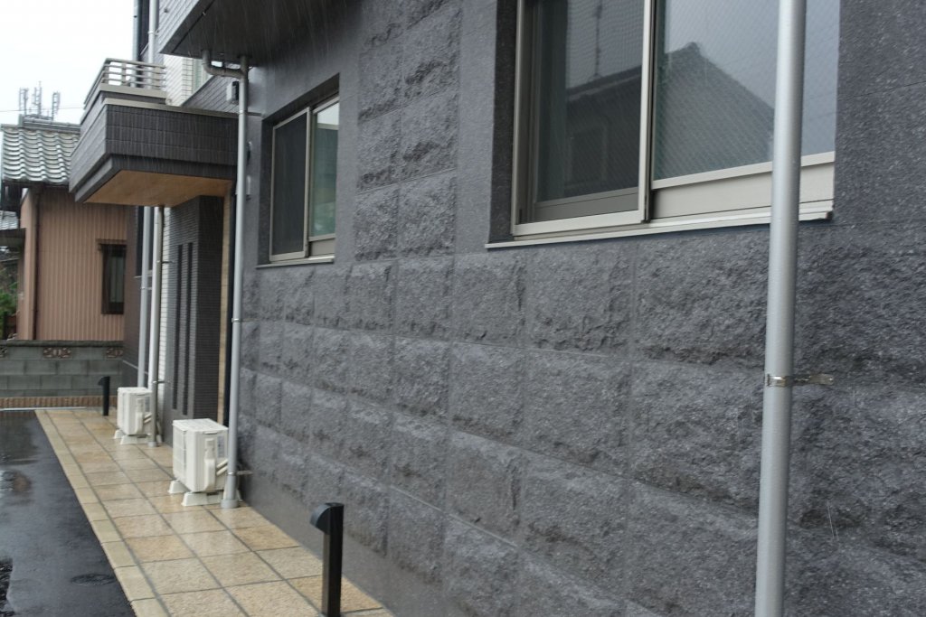 建物正面へ重厚感も持たせる仕上材を検討されていました。