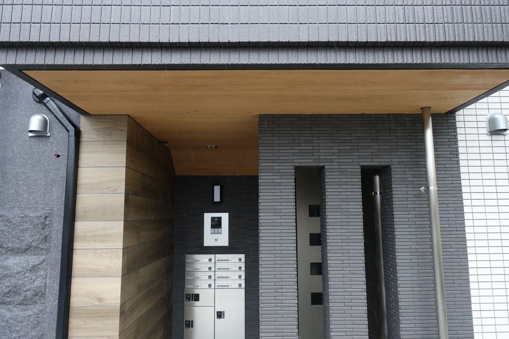 また風除室の天井面(軒天)にも施工できることを評価いただき、木目調マハールを採用いただきました。