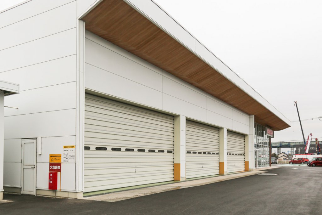 軒天に大きく木目を使用したことで、建物自体にインパクトを与え、ひと際目を惹く建物になりました。