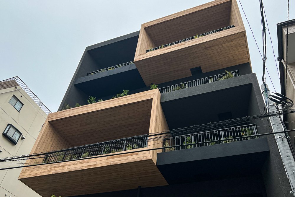 天然木の風合いと黒の塗装仕上げの組み合わせでより木目が生き、施工面の形状が立体的なためおしゃれな建物になりました。
