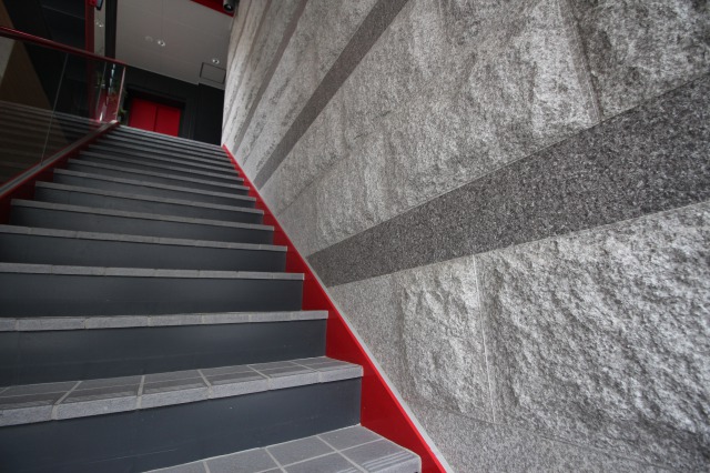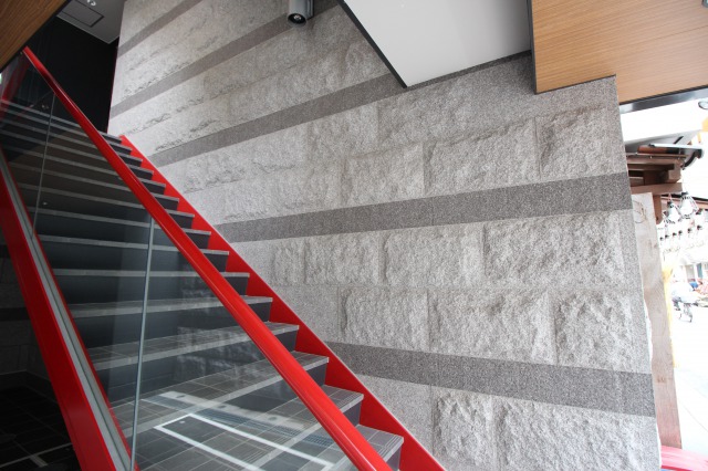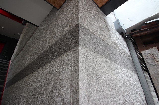 新築の店舗ビルに採用していただきました。 当初は、タイルや本石で検討されておりましたが、重量の関係でマハールをご採用いただけることになりました。