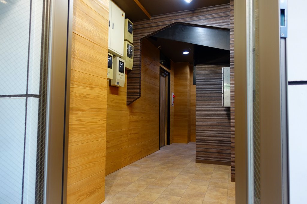 お客様からのリピートでご採用いただきました。 エントランスのイメージを変える為木目調マハールを使用。