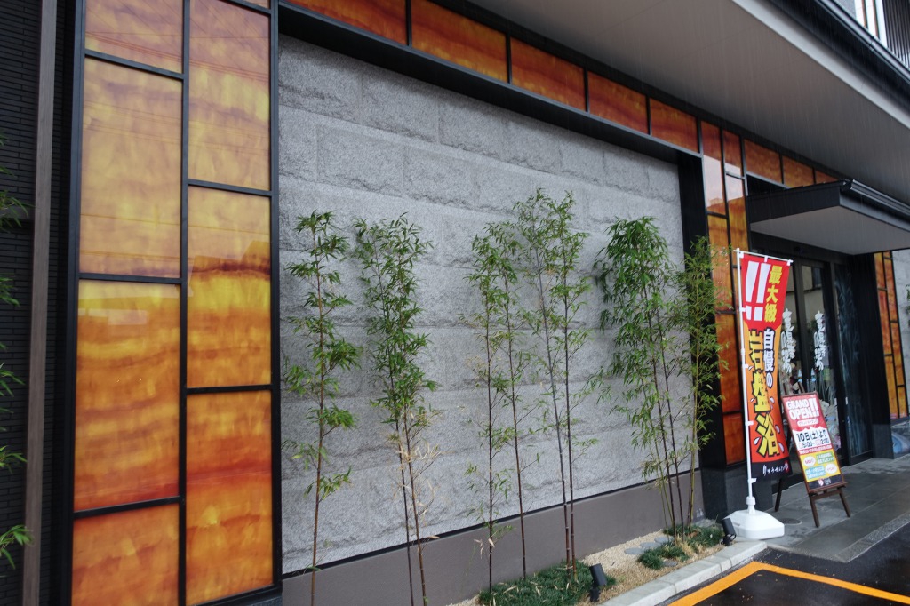 お客様からのリピートで温泉施設に採用していただきました。 下地はALCですが、ALCの上から簡単にこのような重厚感を演出することができます。